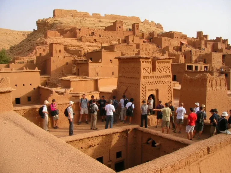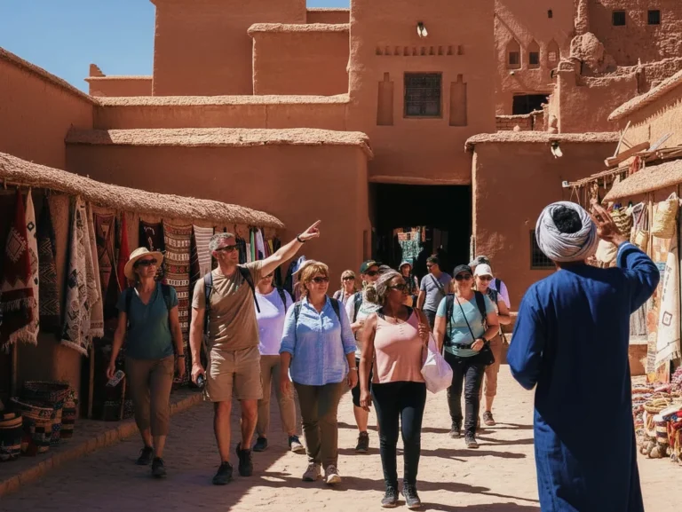 We wake up early to watch the sunrise and gaze at the sand as it turns golden. Afterwards, we return to the camp for breakfast. Then we drive through Erfoud, known for its three weekly markets where you can stroll and observe the making of textiles and pottery. Next, we continue our journey to Erfoud to discover the city’s world-renowned fossil and marble industry. Here, rocks containing fossilized marine life dating back millions of years are extracted and used to create works of art and furniture such as tables and various decorative items. Afterwards, we drive to Tinghir to enjoy the panoramic views and have lunch at free time. Finally, we continue our journey to Ouarzazate for dinner and overnight stay at the hotel. overnight stay in a desert riad.